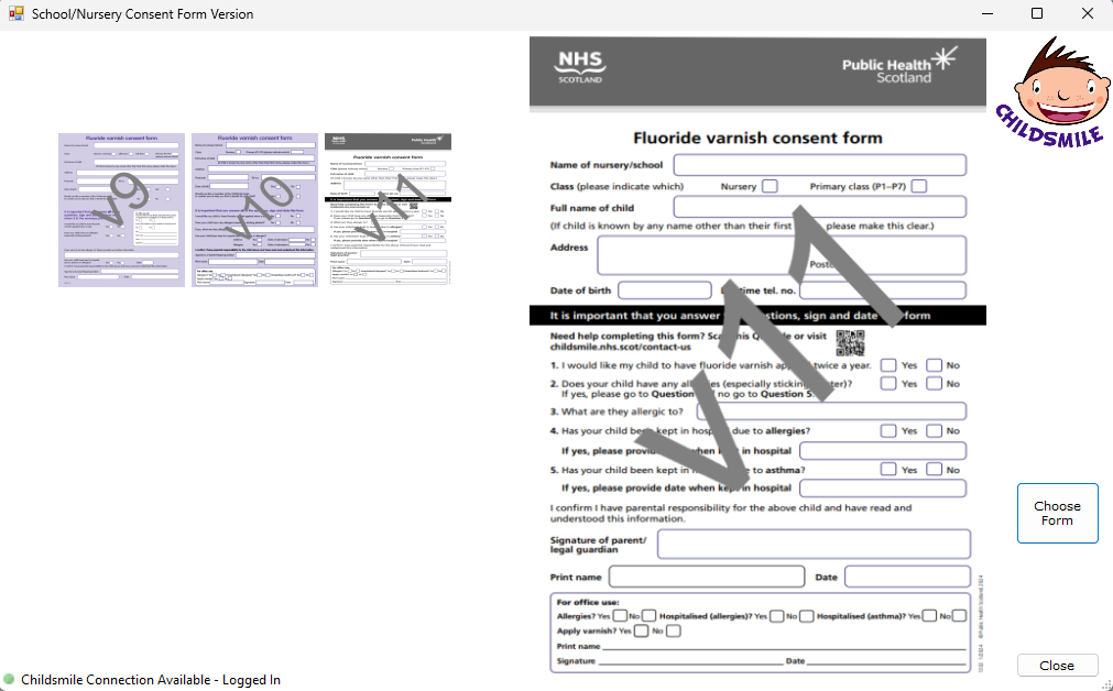 An option has been added so that all children with an allergy to colophony will be permanently excluded from the nursery / school programme by the validating dentist. These children will not receive medical update letters and local Childsmile staff should inform the parent / guardian of the reason why their child cannot receive fluoride varnish as part of the nursery / school programme.