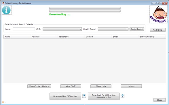 Clicking on the row you are interested in activates the buttons below the list – i.e. ‘View Contact History’, ‘View Staff’, ‘Class Lists’, ‘Letters’, ‘Download for Offline Use’ and ‘Download for Offline Use (contacts only)’.